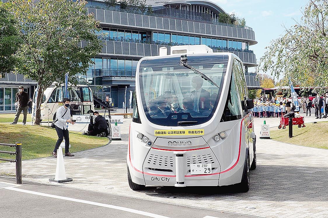 岐阜市は10月23日から31日までの9日間、小型バス車両による自動運転の実証実験を実施した=写真。2019年度から公共交通に自動運転技術を導入する取り組みを続け、公道での実験は昨年に続き2回目。乗務員なしでの運行を見据え、車内を遠隔監視す...