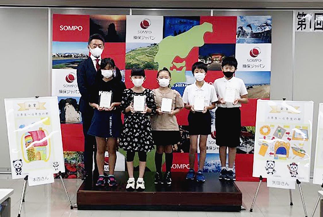 【金沢】損害保険ジャパン金沢支店(奥田健太郎支店長)はこのほど、県民の防災意識高揚を目的に県内の小学生を対象に募集していた防災リュック用デザイン画の優秀作品に対する表彰を行った=写真。 第1回となる「防災リュックデザインコンテスト」には、...