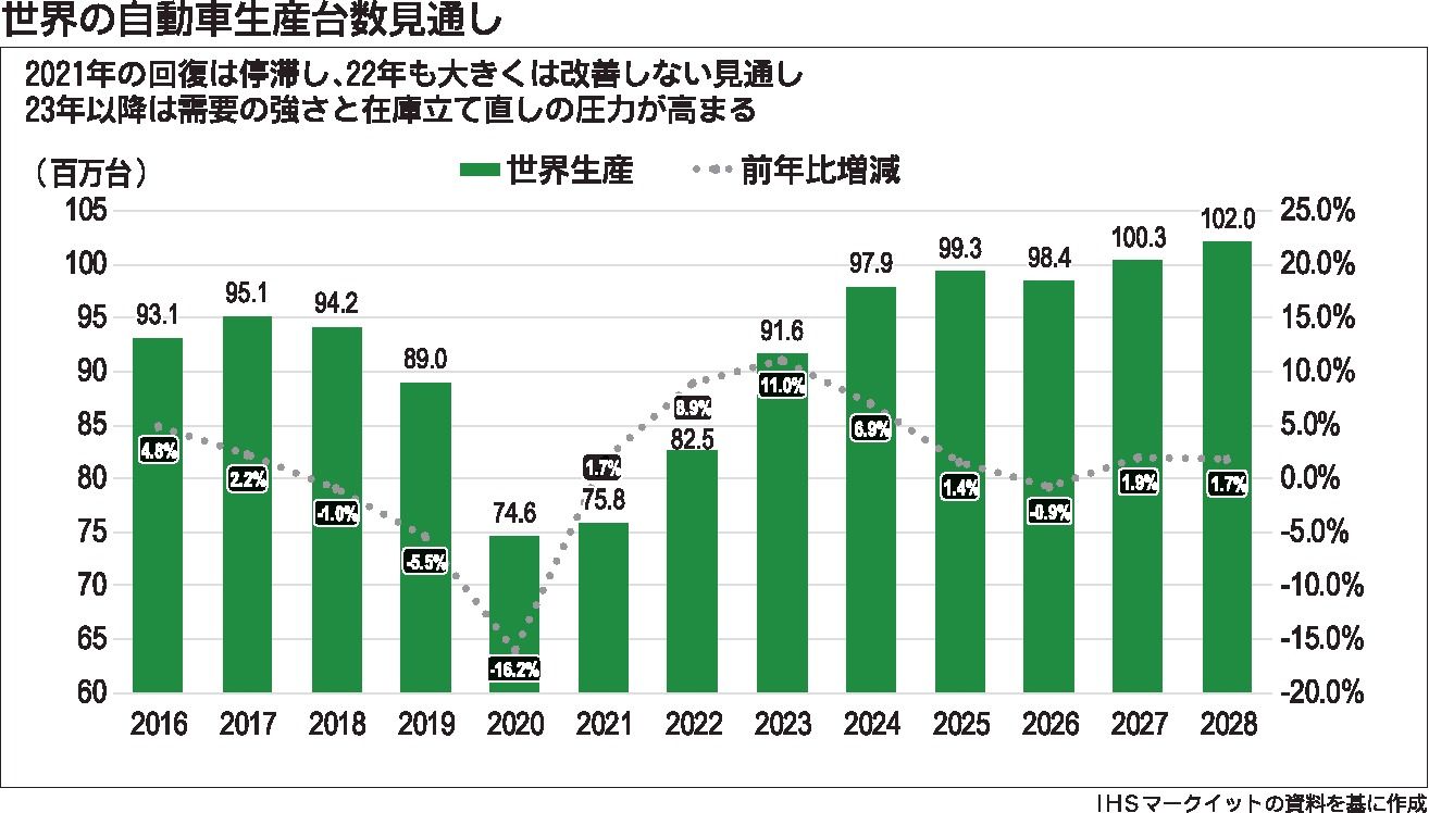 21年の回復は失速しており、22年のリスクが高まっている。来年は今年に比べれば良くなるが、世界の新車販売台数としては8千万台程度を予想している。これがベンチマークになるのではないか。そして23年までには8200万台に達し、24、25年には回復が終わると予想している。自動車メーカーは利益率の高い車を造れば元を取れる。来年も大変な年になるが、トンネルの先には光が見えていると言える。