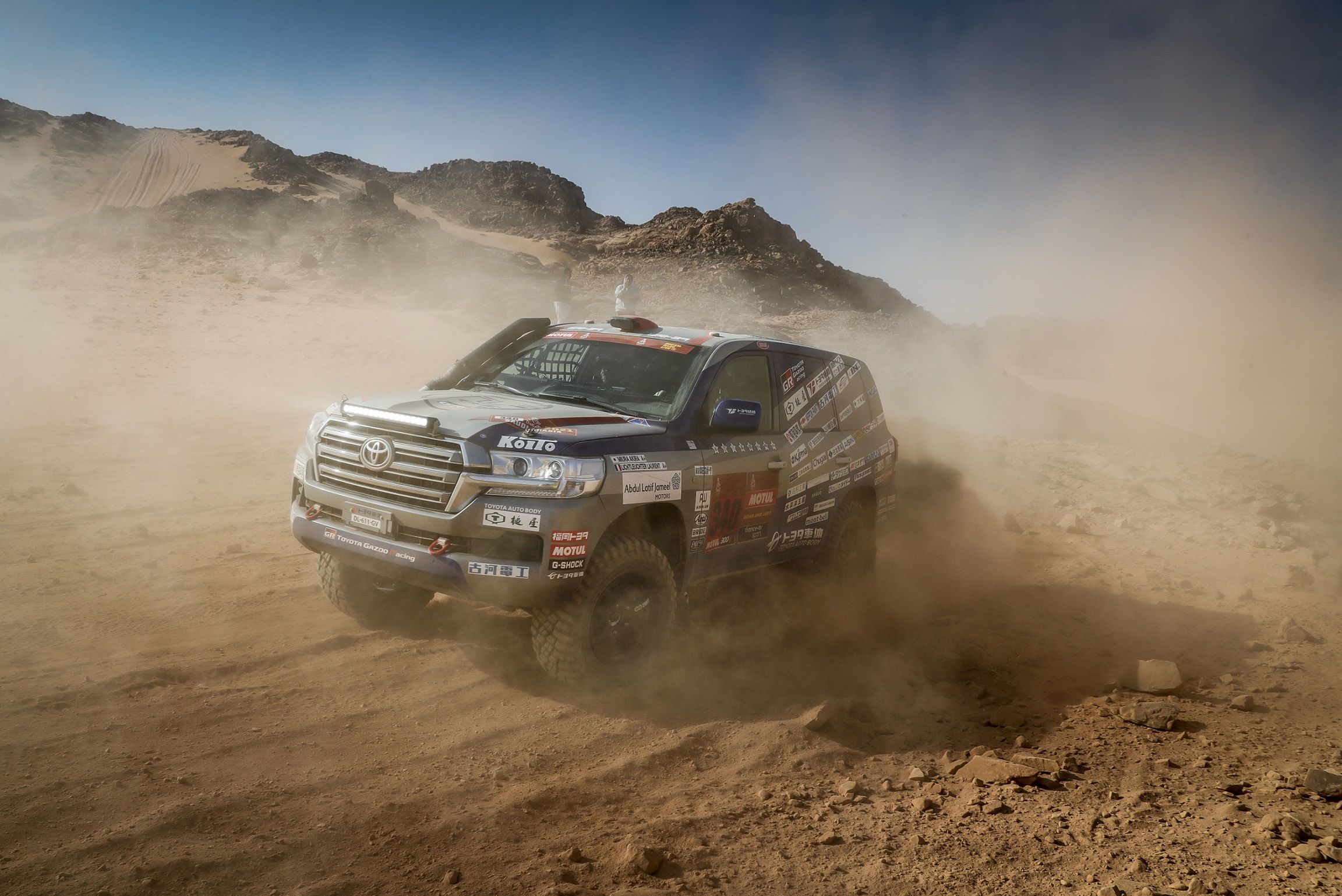 前回に続き、自動変速機(AT)仕様のランクル200系2台で参戦し、ワンツーフィニッシュを飾った。優勝したのは社員ドライバー、三浦昂氏がドライブする1号車。レース途中でスタックやパワーステアリングの故障などに見舞われたが、互いにけん引したり、スペアタイヤを融通し合うなど2台で協力して約7700キロメートルを完走した。同社の優勝はアラコ時代から数えて21回目。大会には286台が参加し、完走率は64%だった。