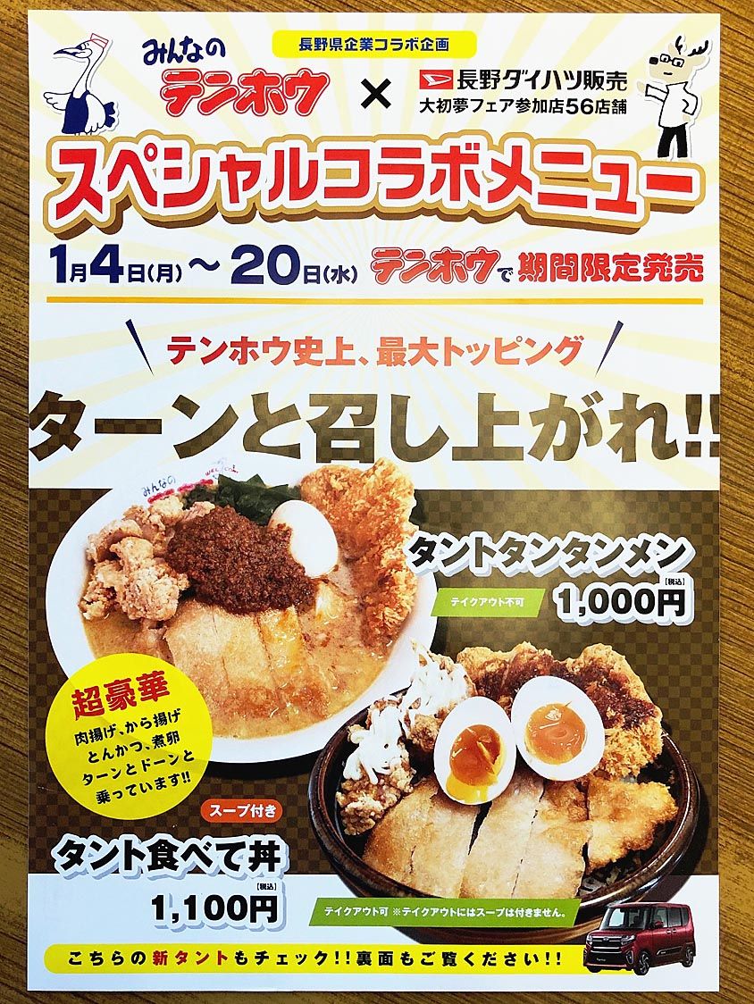 〝タント〟食べてね 長野ダイハツ販売がラーメンチェーンとコラボ