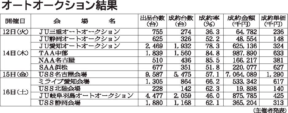 〈オートオークション結果〉中部地区 2021/1/12~16