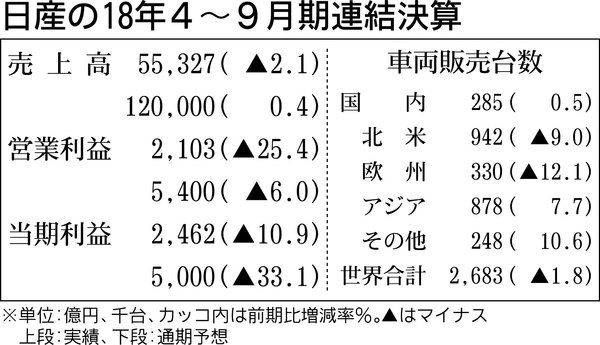 日産、3年連続営業減益 4~9月期、中国好調で減少幅縮小