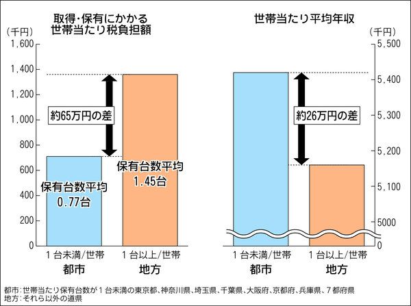 経産省作成資料、車体課税 「地方」「子育て世代」ほど重い負担