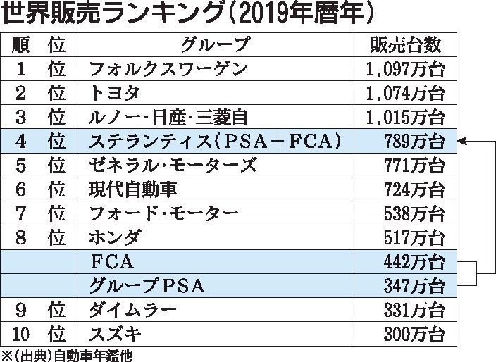 フィアット・クライスラー・オートモービルズ(FCA)とグループPSAが合併し、世界販売4位の新たな自動車会社「ステランティス」が誕生した。プラットフォームの共有化や共同購買などで年間のシナジーは50億 ユーロ (約6千億円)と見積もる。先...