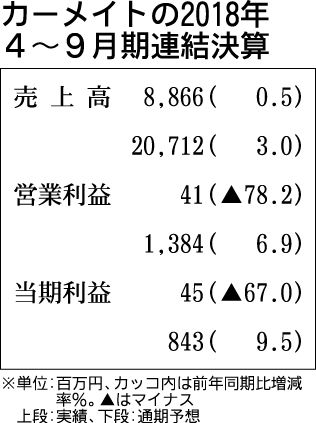 カーメイト、4~9月期 大幅減益