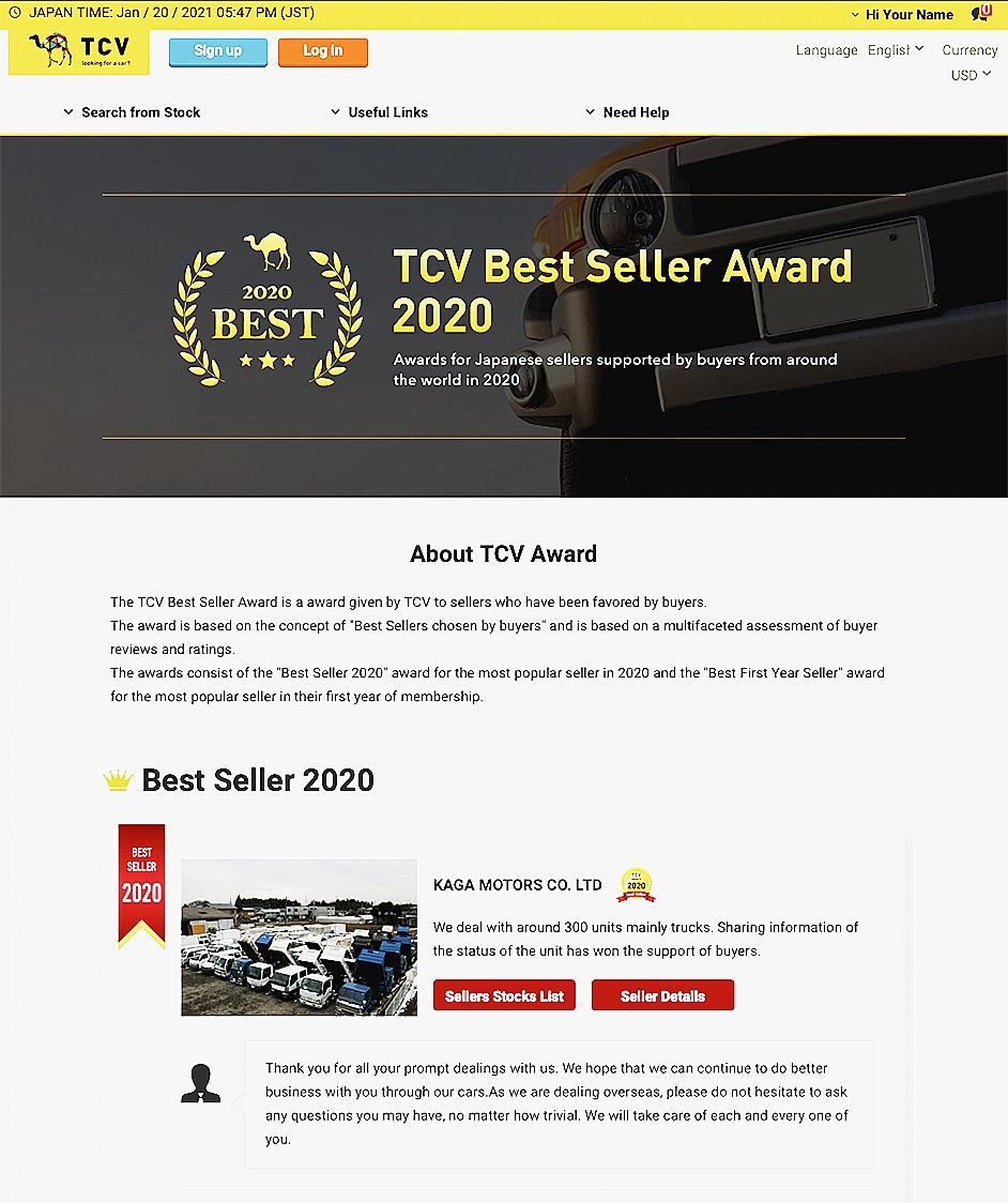 じげん子会社で中古車輸出プラットフォームの運営を手がけるTCV(須崎和延社長、東京都港区)は21日、「TCVベストセラーアワード」を発表した。バイヤーからの評価などをもとに、独自基準で優秀店を表彰した。表彰制度を設けるのは、同社として初め...