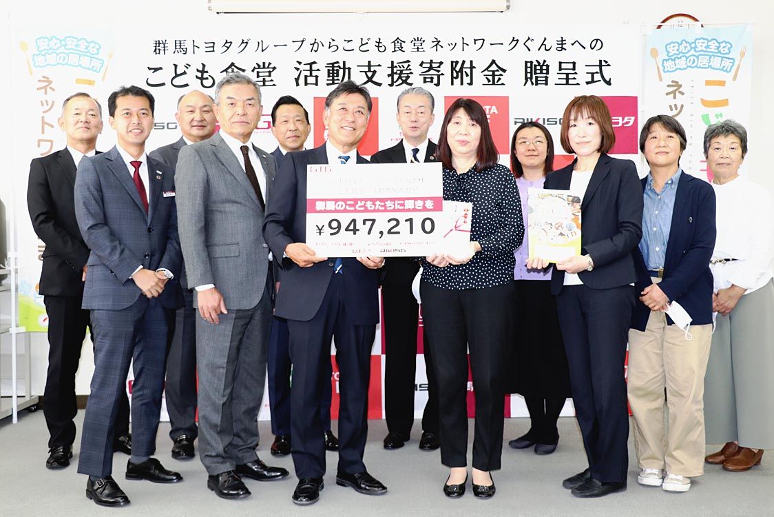 【前橋】群馬トヨタ、ネッツトヨタ高崎、トヨタレンタリース群馬、トヨタL&F群馬、RIKISOの群馬トヨタグループ(GTG)(横田衛社長)5社は、「こども食堂ネットワークぐんま」(丸茂ひろみ代表)の活動に役立ててもらうための寄付金を贈呈した...