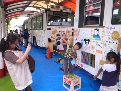 鈴鹿自動車整備組合青年部、街を走るバスに子どもたちがお絵かき