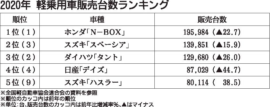 2020年(1~12月)の都道府県別軽乗用車販売で、スズキが26都道府県でシェア首位を獲得した。このうち、12都道府県でダイハツ工業から首位を奪った。全面改良した「ハスラー」など新型車効果に加えて、19年は完成検査問題の再発防止策で生産ス...