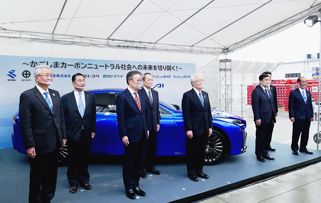 【鹿児島】鹿児島県内のトヨタディーラー5社は、鹿児島市新栄町で「新型ミライ商品披露会」を開催した=写真。5社の社長や鹿児島県の塩田康一知事、鹿児島市の下鶴隆央市長らが出席し、官民一体となって新型の燃料電池車(FCV)普及に取り組む姿勢を示...
