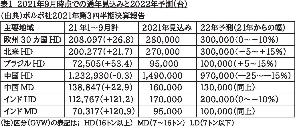 Ⅰ 市場環境及び概況 上半期の天国状態が大きく変わって、昨年の第3四半期はコロナ蔓延が始まり生産・販売が落ち込んだ反動で今年は前年プラスだが、半導体不足、原材料高騰と地獄へ走りつつあり。 イ)ダイムラー・トラックのマーチン・ダウム社長...
