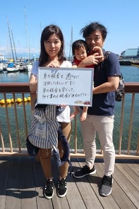 自動車関係21団体で構成する「自動車税制改革フォーラム」は29日、「全国7800万ユーザーの声を47都道府県の知事へ届ける活動」を27日に完遂したと発表した。ユーザーが自動車の税負担の軽減を求める意見を書いたボードを手にしている様子を撮影...