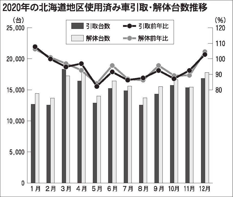 〈リサイクル北から南から〉北海道のリサイクル事情 ELV引取・解体処理台数は2020年12月に1年ぶり前年超え