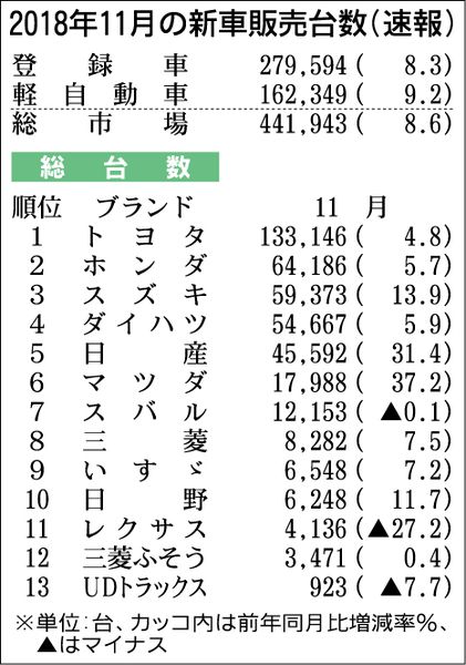 11月新車、2ヵ月連続で増加 新型車の販売好調