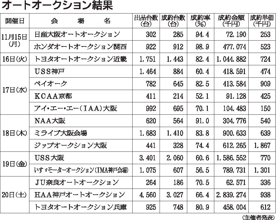 〈オートオークション結果〉近畿地区 2021/11/15~20