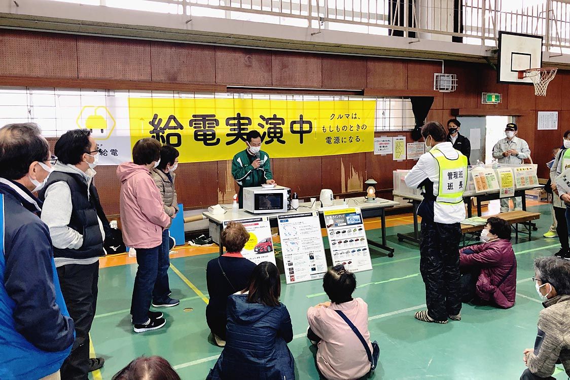 京都府オールトヨタ、京田辺市の小学校で給電車派遣訓練実施 家電などに充電
