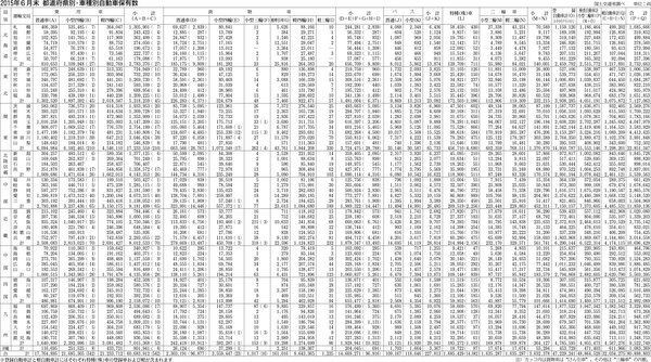 【2015年6月末 都道府県別・車種別自動車保有数】