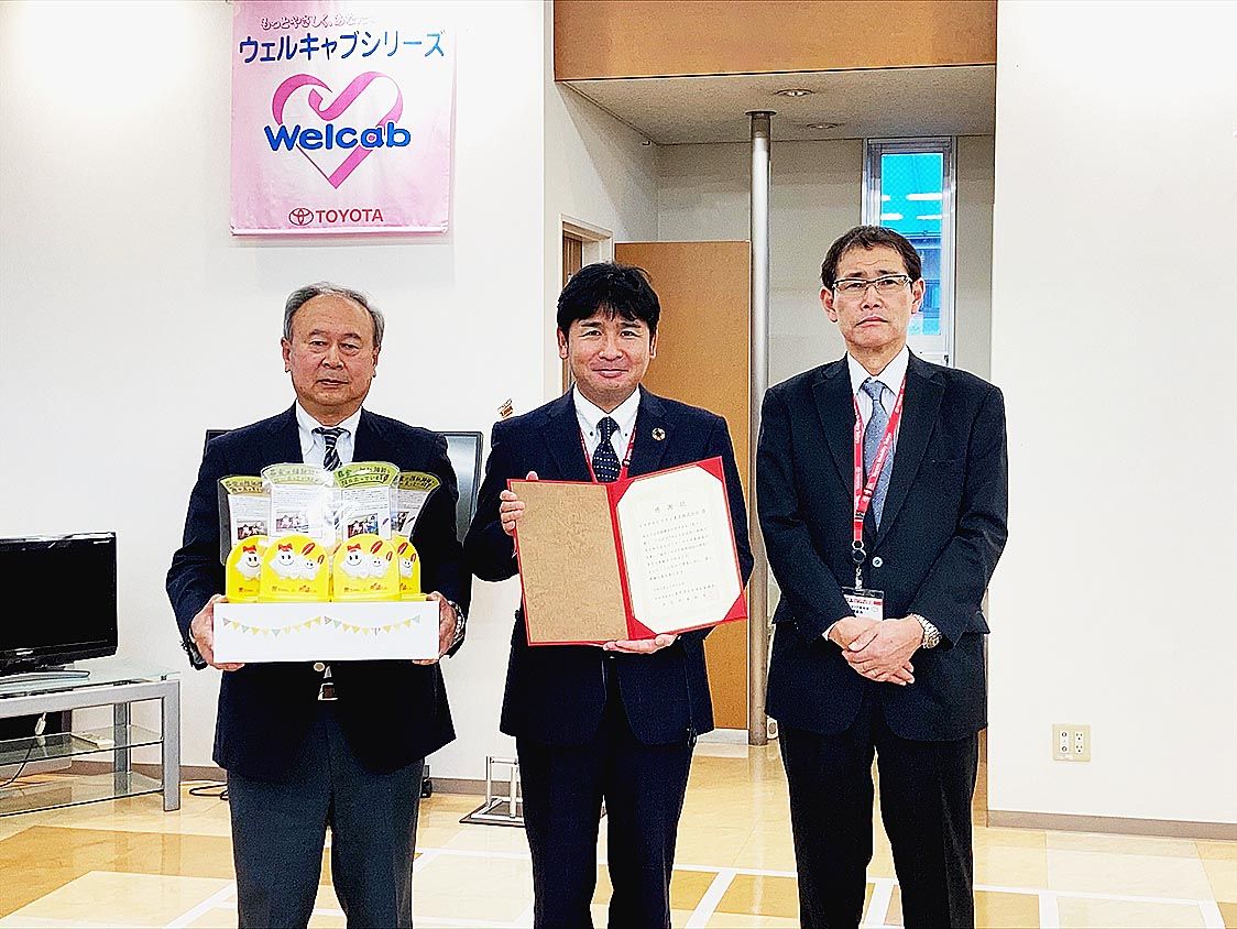 トヨタモビリティ東京(TM東京、関島誠一社長)は、府中市内5店舗で募金した「2021年度赤い羽根共同募金」を、府中市社会福祉協議会に寄付した=写真。府中の森店ショールームで実施した贈呈式で、トヨタ第12エリア統括部の千葉雅隆部長は、「SD...