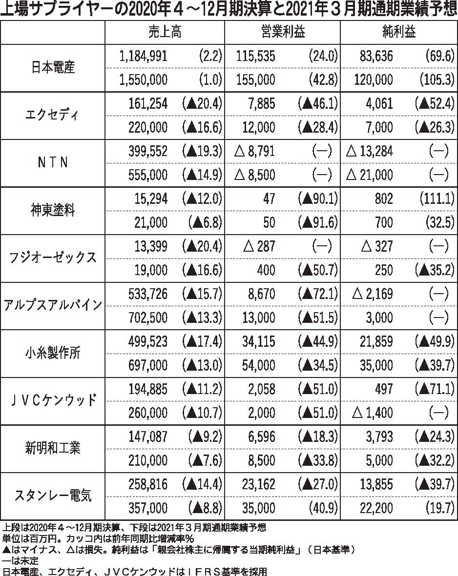 〈上場サプライヤーの2020年4~12月期決算と2021年3月期通期業績予想〉