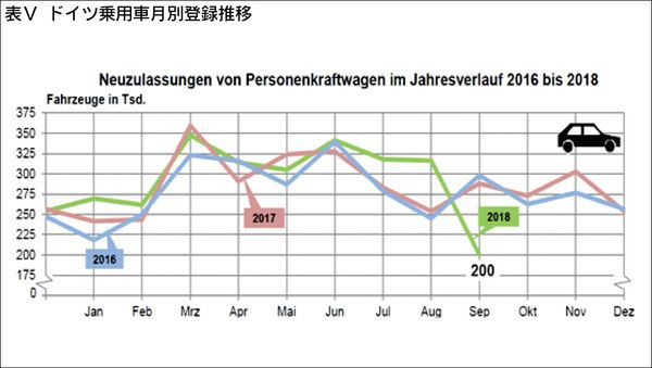 (前回のつづき) ドイツの月別登録推移。今年は7,8月に増販が起こり9月にその反動の大きな減少が起こった。10月も減少率は低くなるがその傾向は続いているとのこと(表Ⅴ参照)。 (3) 9月1日よりWLTP基準でしか登録出来なくなるので(既...