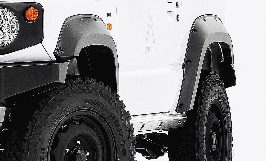 ジムニー専用パーツメーカーのアピオ(河野仁社長、神奈川県綾瀬市)は、「ジムニーシエラ(JB74)」専用のナローフェンダーを発売した。ノーマルフェンダーと比べてフロントを片側29ミリメートル、リアを片側27ミリメートル狭くすることで「JB43」並みの車幅を実現。ホイールも15インチから16インチへのインチアップにも対応し、地上高に余裕を持たせた。
