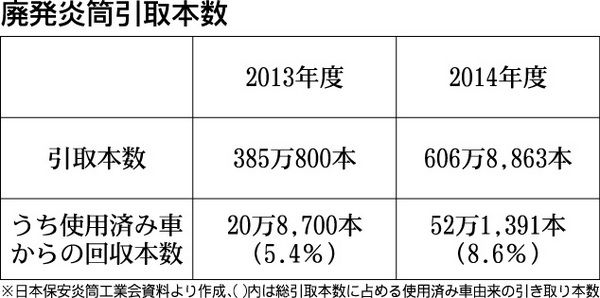 日本保安炎筒工業会(JSFIA、富沢満会長)が「廃発炎筒処理システム」(SMaP)によって引き取った2014年度の廃発炎筒回収本数は前年度比57・6%増の606万8863本と過去最高になった。JSFIAでは17年度までに目標回収本数を70...