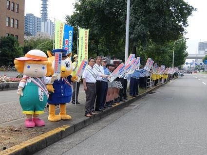 大村秀章知事が率いる集団が愛知県庁前の歩道に18日現れ、「高齢者を交通事故から守ろう」と書かれたサインボードを掲げて、道行くドライバーたちに安全運転を呼び掛けた。21日に開始される秋の全国交通安全運動を前に、愛知県と愛知県交通安全推進協議...