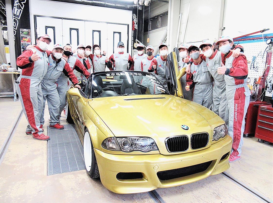 学生たちの学びと熱意の結晶は、コロナ禍の逆境を跳ね除け黄金色に輝いている―。 小倉学園(小倉基義理事長)が運営する東京自動車大学校(TAUS、小倉基宏校長、東京都葛飾区)は、ボディクラフト科の有志14人で渾身のクラフトカー「BM★ロードス...