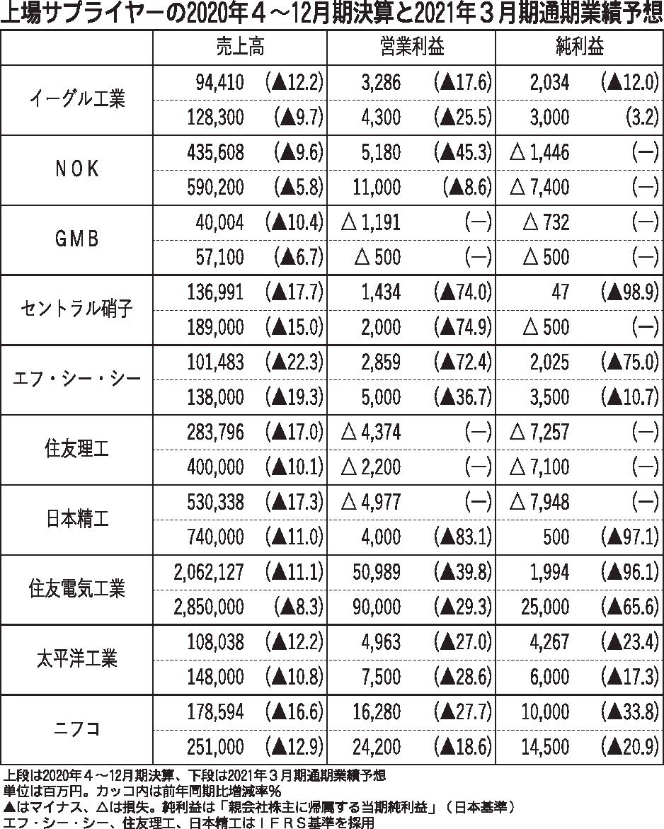 〈上場サプライヤーの2020年4~12月期決算と2021年3月期通期業績予想〉