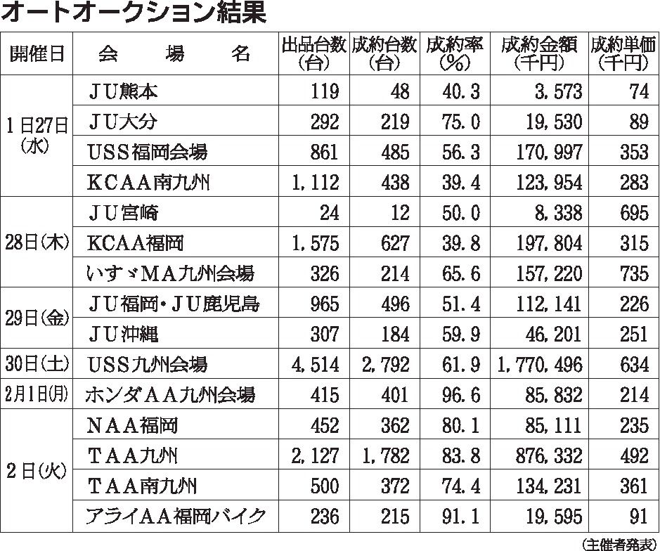 〈オートオークション結果〉九州地区 2021/1/27~2/2