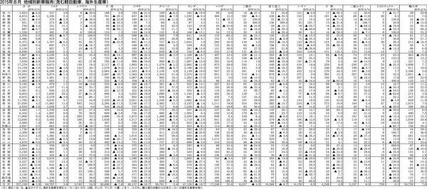【2015年8月 地域別新車販売(含む軽自動車、海外生産車)】