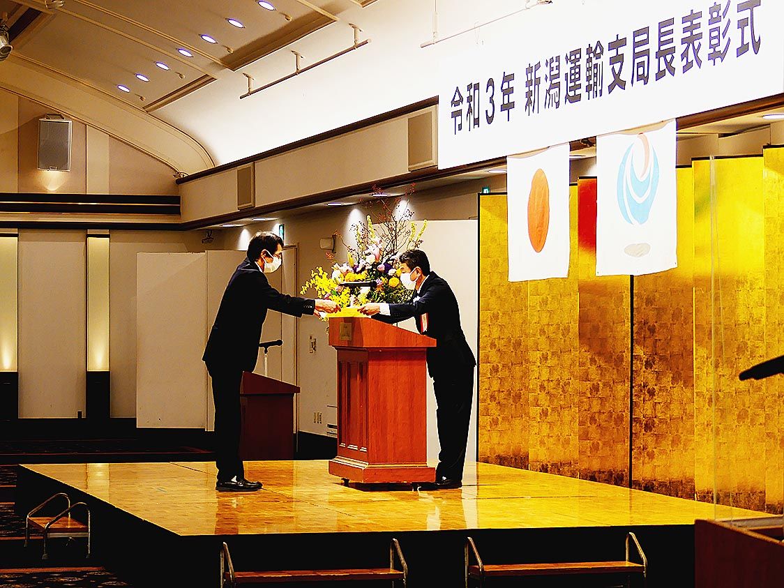 【新潟】国土交通省北陸信越運輸局新潟運輸支局(吉澤實敏支局長)は、「令和3年新潟運輸支局長表彰式」を新潟市内のホテルで開催した=写真。自動車関連事業の業務に貢献・精励し環境保全対策、安全対策などに積極的な取り組みを行った優良事業場、事業所...