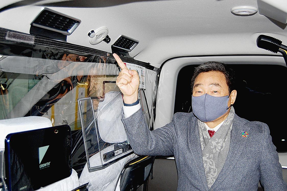 東京ハイヤー・タクシー協会環境・車両資材委員会の根本克己委員長(境交通社長)は、大学や自動車用品メーカーとともに開発を進めてきた新型コロナウイルス対策のためのタクシー車両用LED灯を、自動車会館(東京都千代田区)でハイタク専門紙関係者に公...