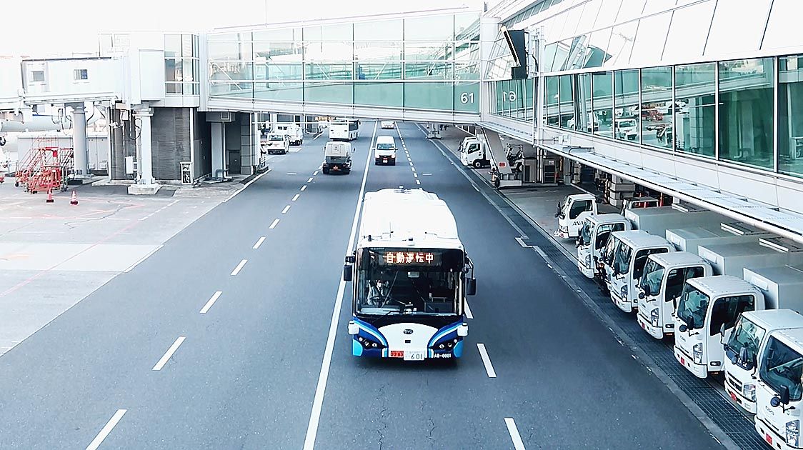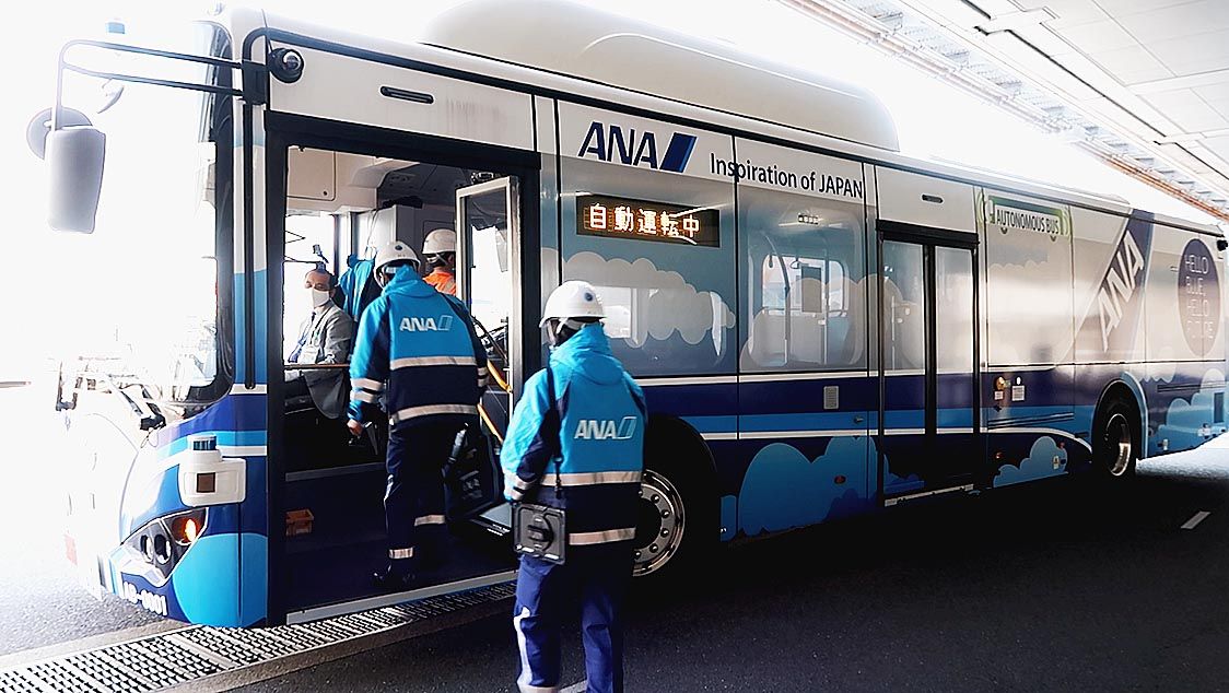 ANA、羽田で大型電気自動運転バス試験運行