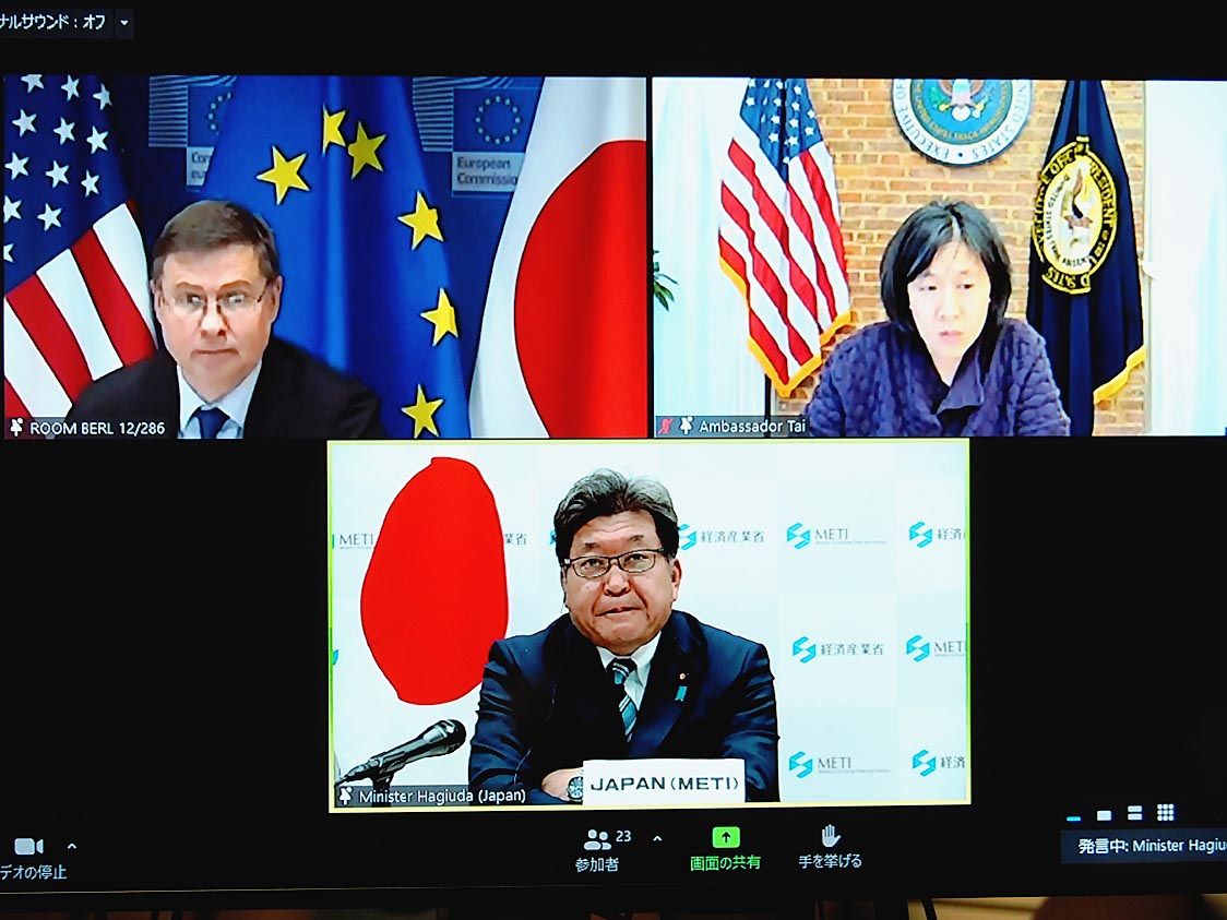 日本と米国、欧州連合(EU)の三極貿易大臣会合が30日、テレビ会議形式で開催された。日本側は萩生田光一経済産業相が出席。一部の国々で散見される不公正で市場歪曲的な政策に適切に対処していく必要があることなどを訴えた。会合では「労働者とビジネ...