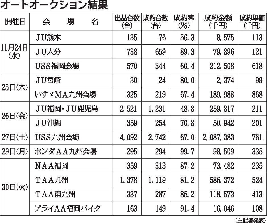 USS九州会場、2025年度AAで出品台数・成約率ともに過去最高