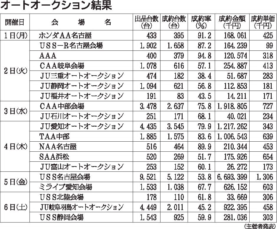 〈オートオークション結果〉中部地区 2021/2/1~6