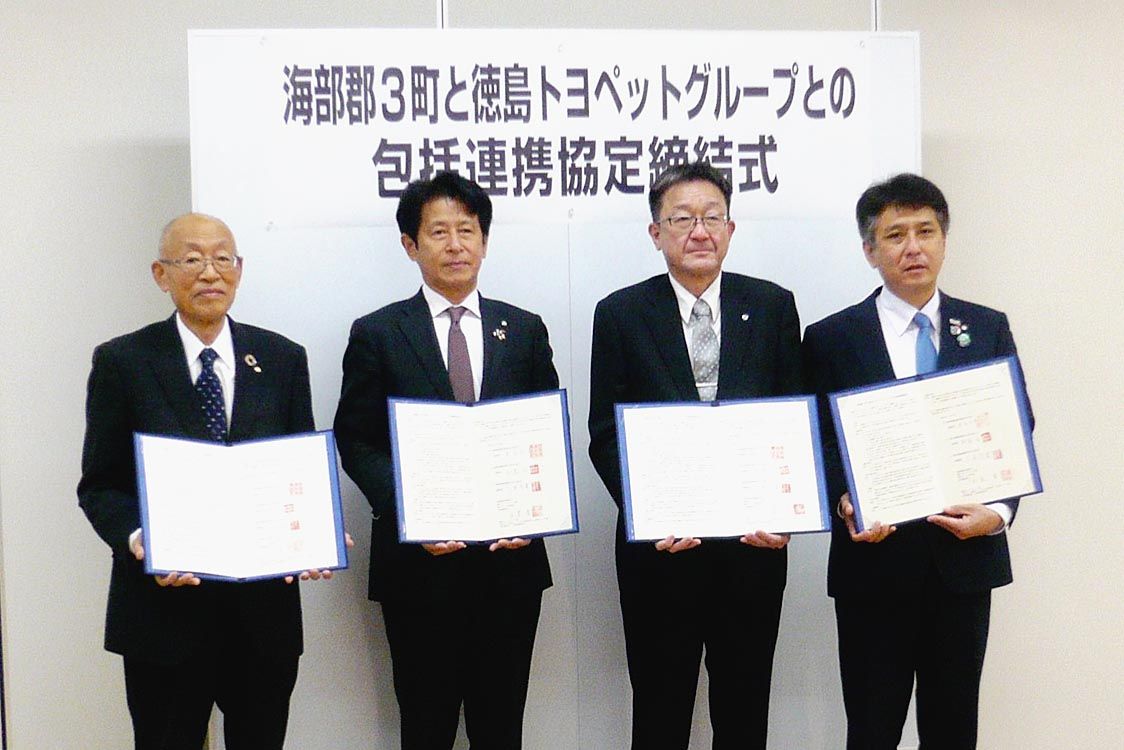 【徳島】徳島トヨペット(玉置潔社長)グループは、県内自治体との包括連携協定の締結を推進する。災害発生時にプラグインハイブリッド車やハイブリッド車などの外部給電可能な車両を、避難所などに持ち込むほか、物流面や避難者の輸送面でも協力する県内地...