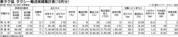 【東タク協 タクシー輸送実績集計表(10月分)】