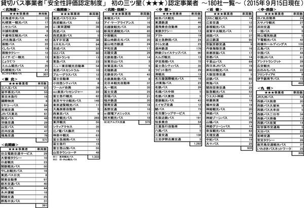 日本バス協が“三ツ星”事業者180社認定公表