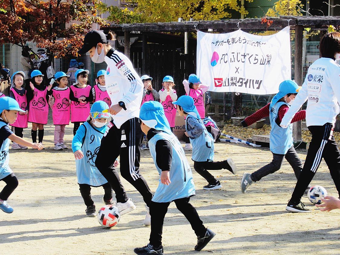 山梨ダイハツ(中島健二社長)は、甲府市内にある「かほる保育園」で年長クラス52人の園児を対象に、「サッカー教室」を開催した。山梨県女子サッカーリーグ1部に所属するFCふじざくら山梨と共同で推進する「サッカーを楽しもうプロジェクト」の一環で...