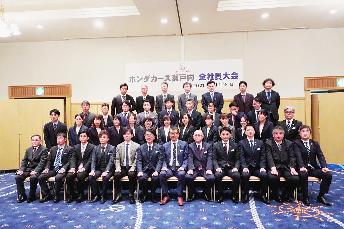 【広島】ホンダカーズ瀬戸内(山田幸一会長)はこのほど、広島県尾道市内のホテルで10月1日の合併に伴う全社員ミーティングを開催した=写真。山田会長は「夢に向けて」と題して創業時を振り返るとともに、新たな門出として「仕事は楽しく厳しいものと理...