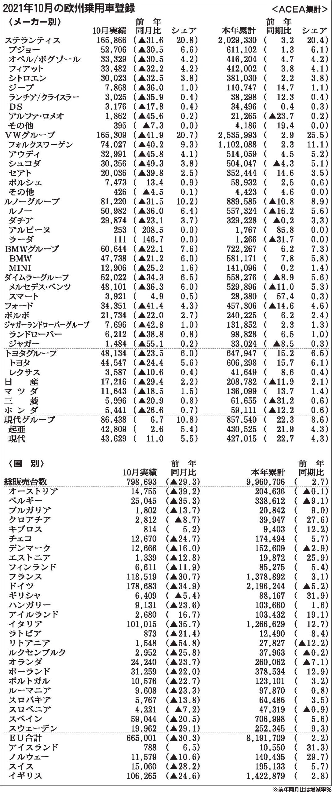 〈2021年10月の欧州乗用車登録〉