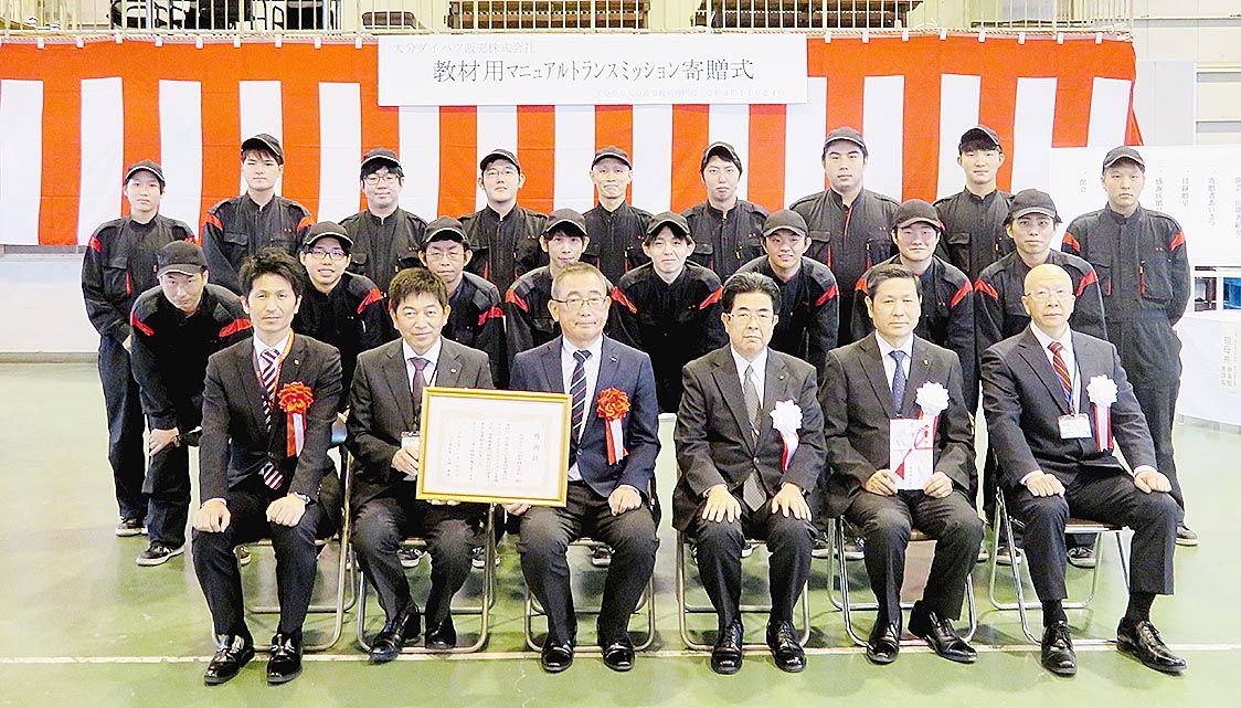 【大分】大分ダイハツ(上田稔哉社長)は、社会貢献活動の一環として大分市の県立大分高等技術専門校に、教材用のマニュアルトランスミッション一式を寄贈した=写真。 11月24日に同校の実習場で寄贈式が催され、大分ダイハツの上田社長をはじめ、大分...