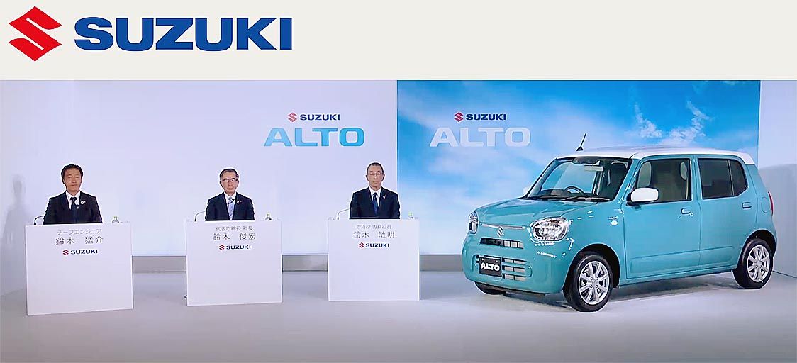 鈴木社長はマイルドハイブリッドシステムを搭載した新型アルトは「夜明け前で、次のアルトでは朝が来たと言われるアルトにしたい」と述べ、電気自動車(EV)を含めて電動化を推進していく方針を示した。