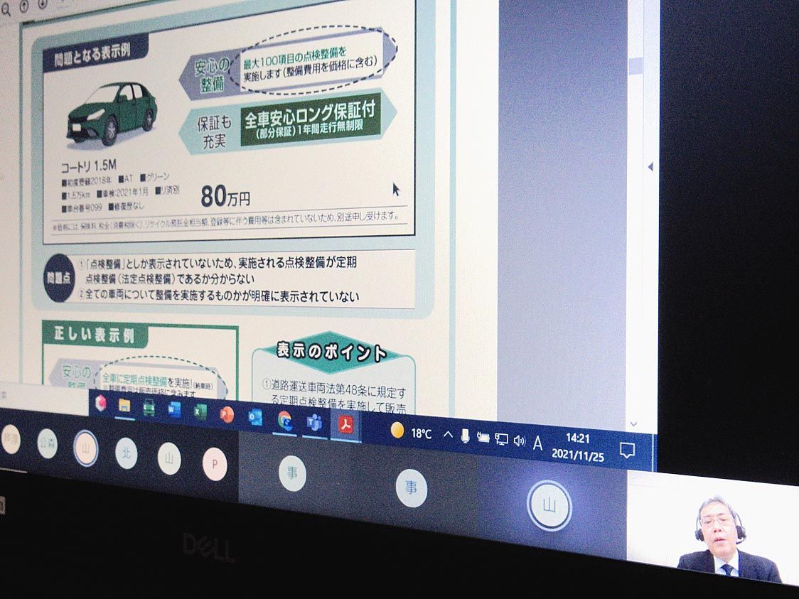 【甲府】山梨県自動車販売店協会(佐々木宏明会長)は、オンラインによる「新車・中古車の広告宣伝を行う際の規約研修会」並びに「消費者相談対応研修会」を実施した。事前の配布資料と講師が画面に表示する資料を使用して進め、自動車公正取引協議会の担当...