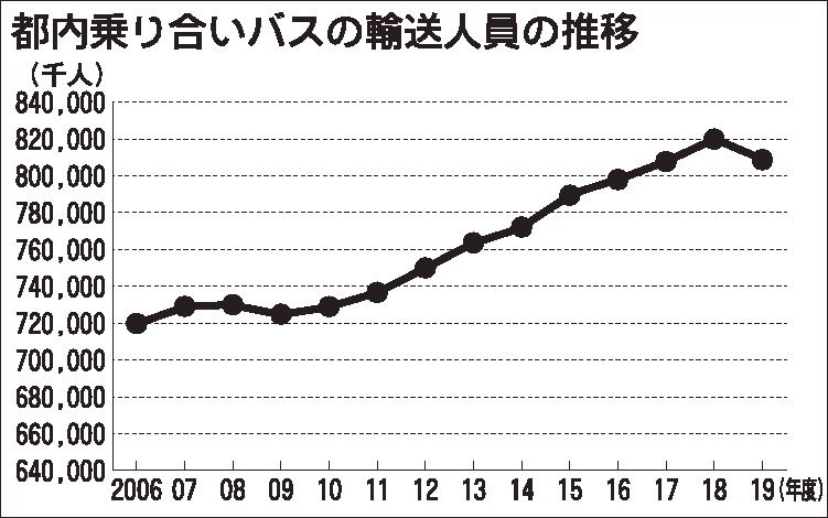 都内路線バス10年ぶり減、輸送人員・運送収入 コロナ禍が色濃く影響