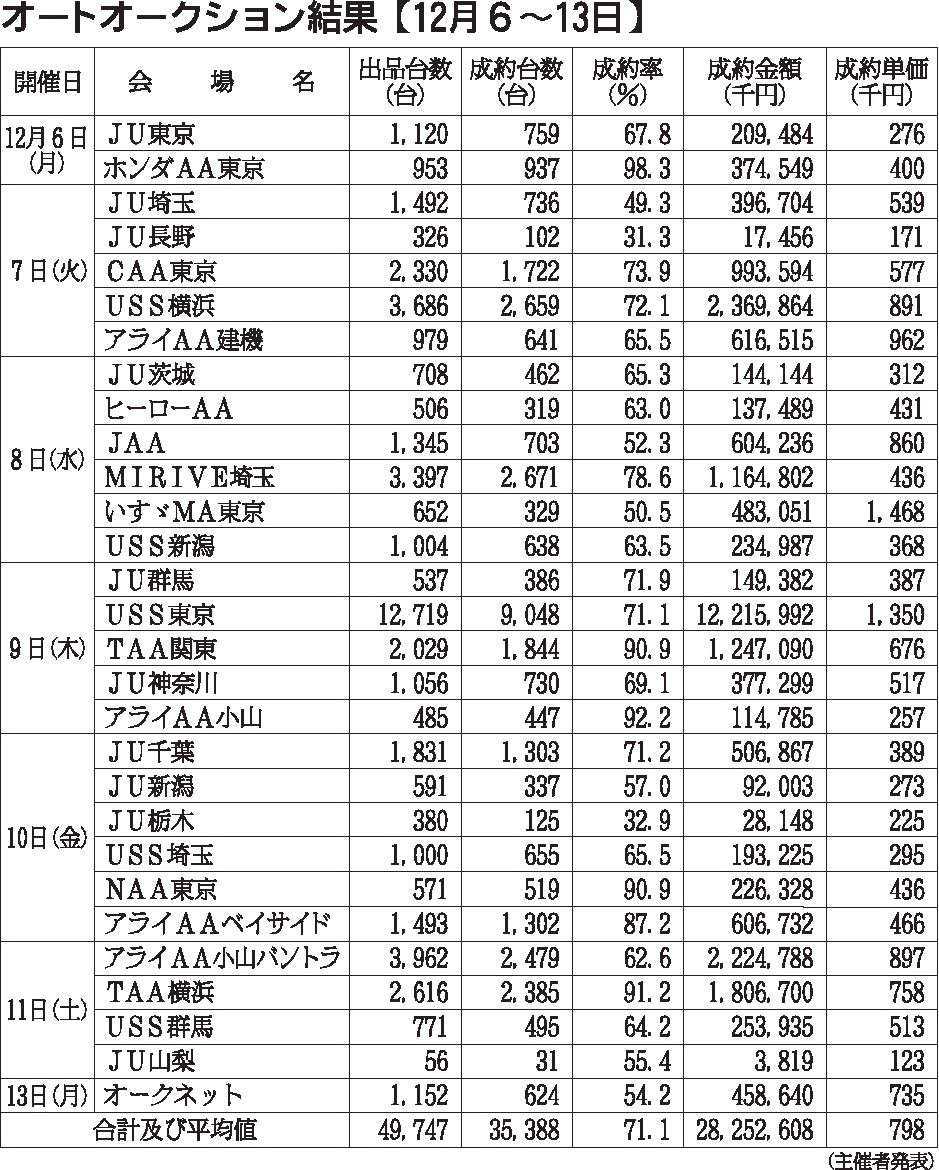 〈オートオークション結果〉首都圏 2021/12/6~13
