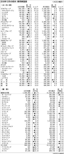 【2018年12月の欧州 乗用車登録】